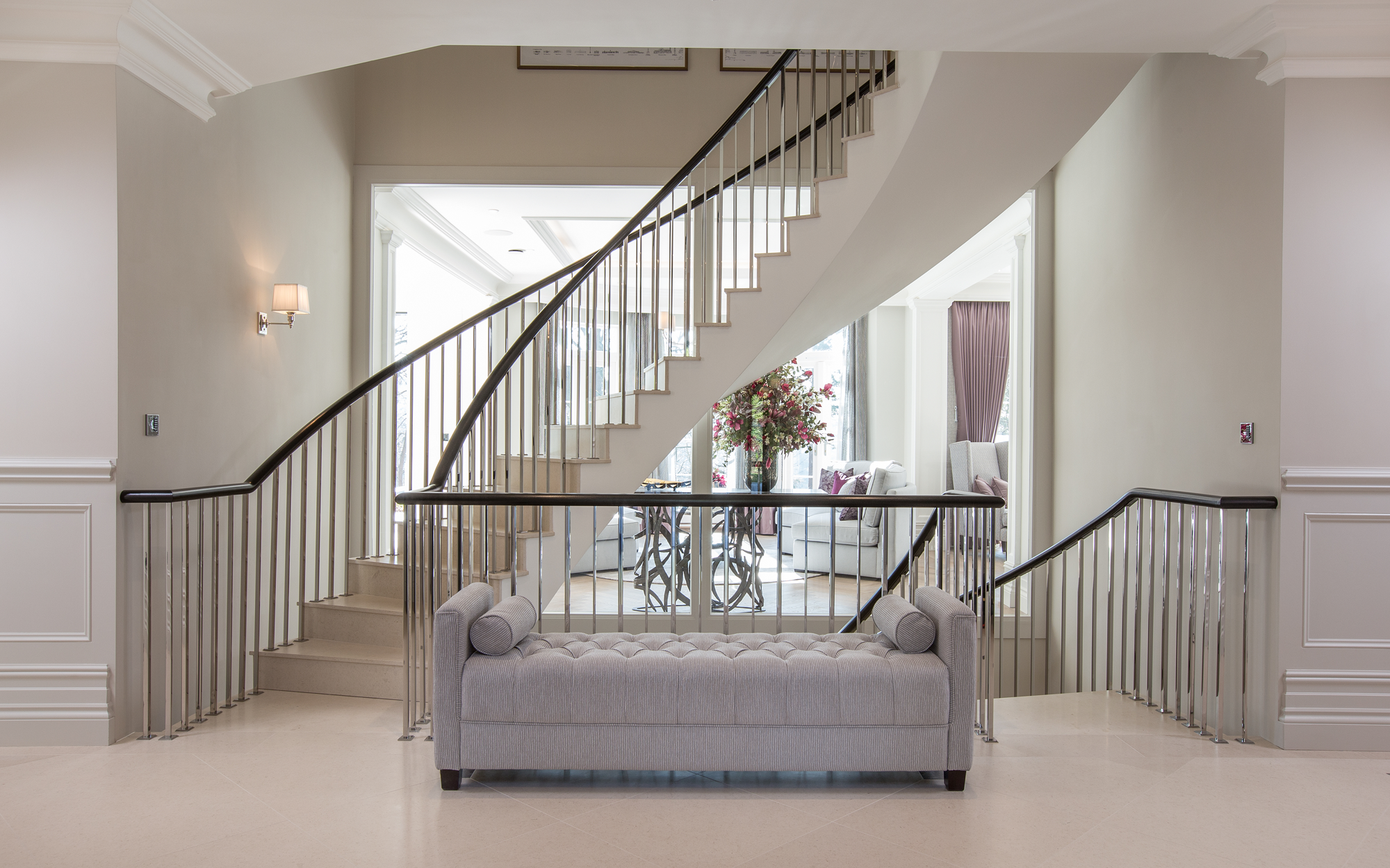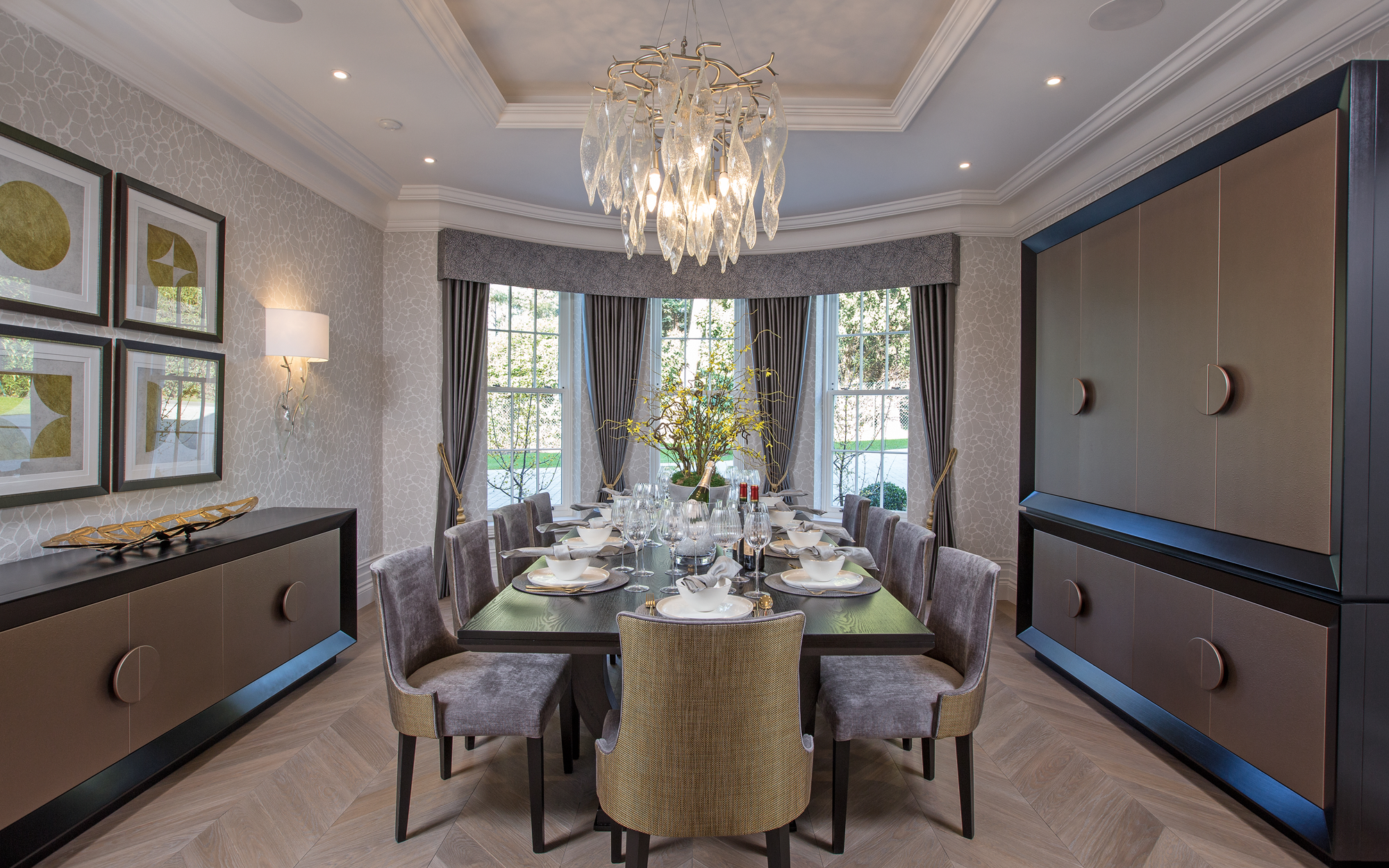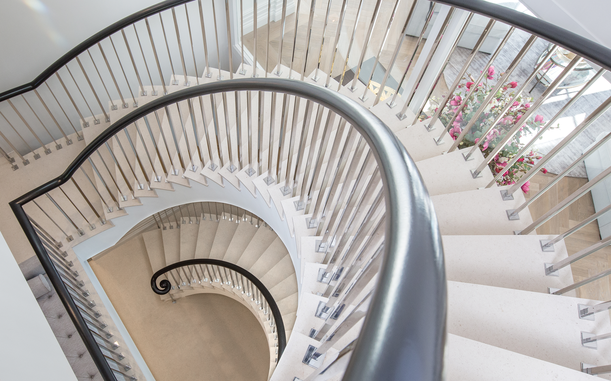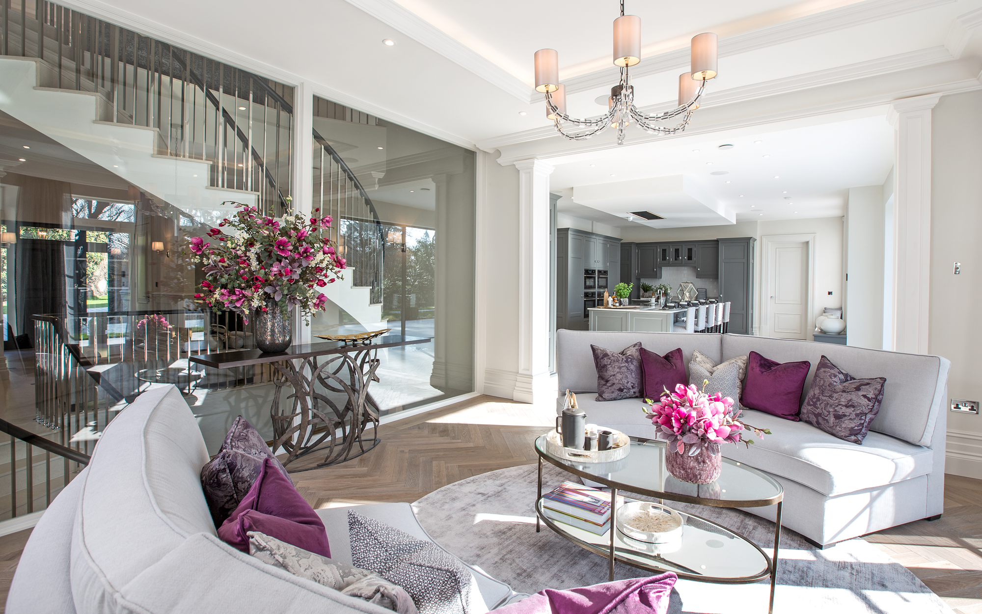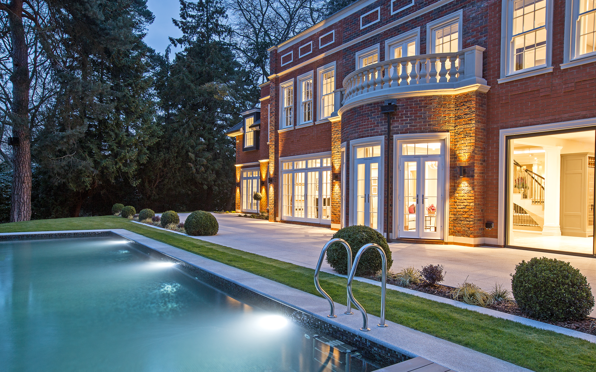 A breathtaking 11,500 sq ft residence in Weybridge with spectacular views overlooking the exclusive St. George’s Hill Golf Club. Inside, a magnificent spiral staircase runs the full height of the home, leading you up to a master suite with twin bathrooms and dressing rooms and five further bedrooms. This elegant property features landscaped gardens framed by mature trees, with terracing and a 14m infinity pool designed to make the most of the view. Other star features include a state of the art fitness facility with juicing bar, games and media rooms, and separate staff quarters.